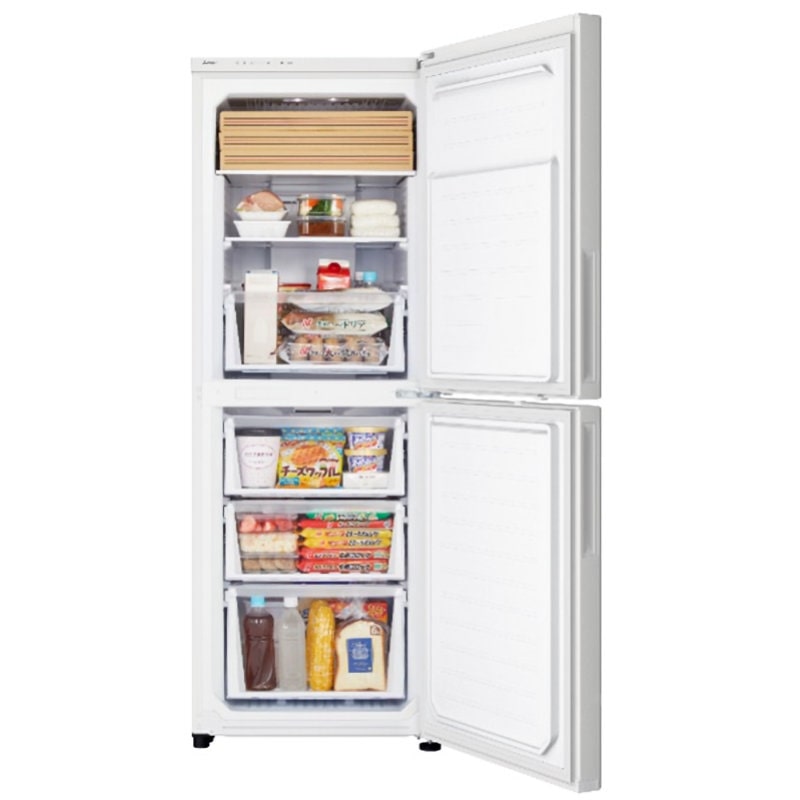 ・2ドアレイアウトならではの使い勝手 ドアを1つずつ開閉できるから冷気漏れを抑制し節電になります。 ・コンパクトで使いやすい大容量 ・家具や空間と調和してすっきりとした外観 ・上下2ドアタイプで整理しやすい