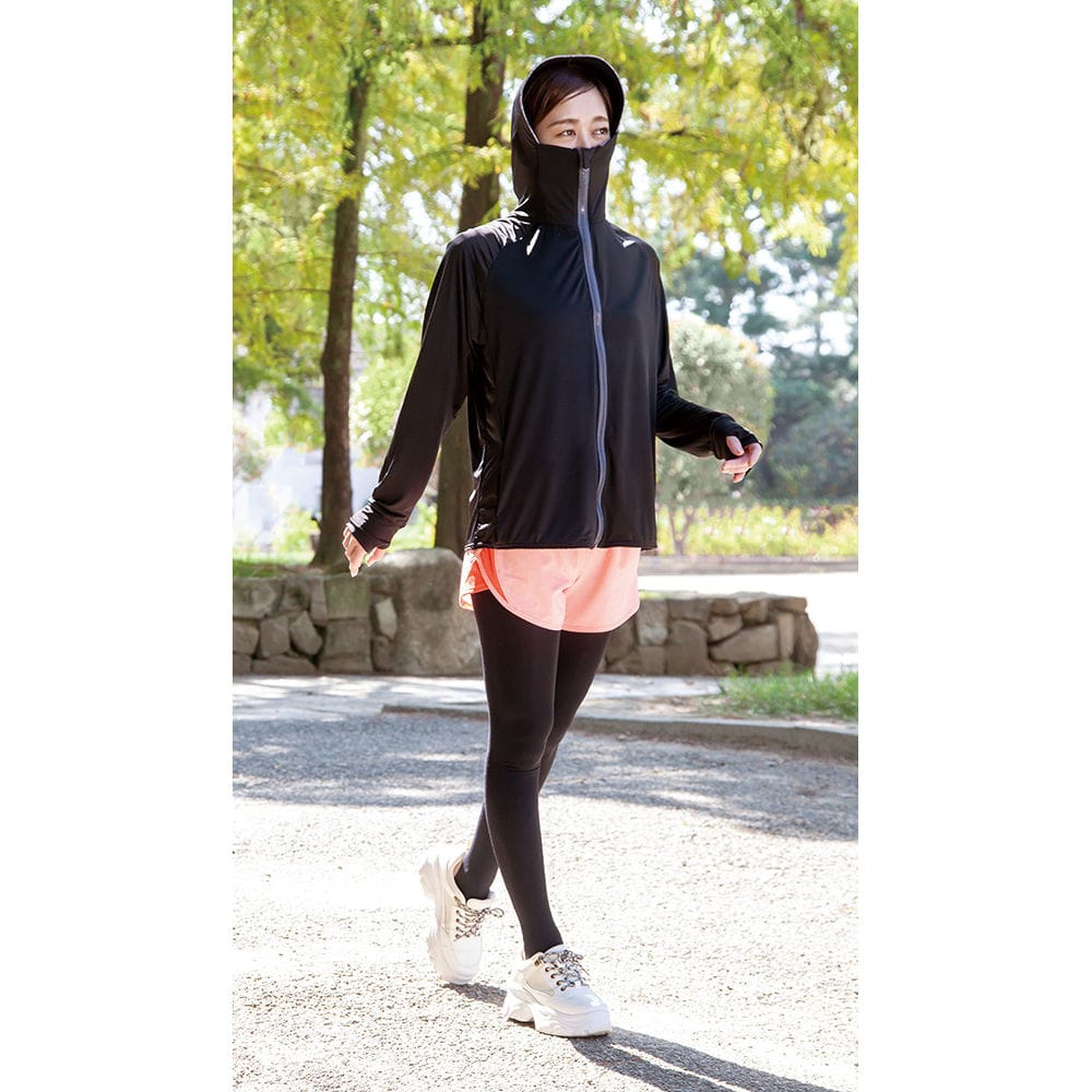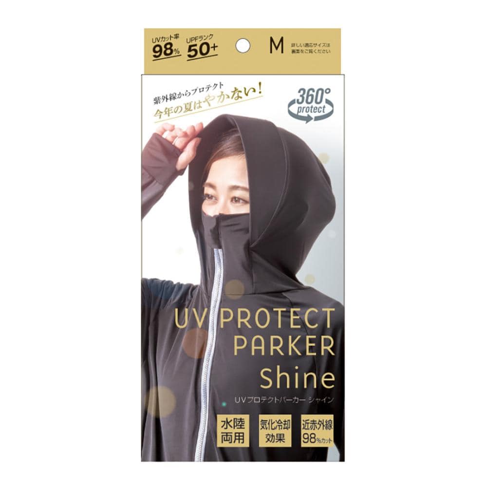 形状は、顔まわりをすっぽり覆える大きめのツバ付きフード。 指穴付きの袖口で手の甲、手のひらもしっかりカバー。ポケット付きで着丈はゆったりサイズ。 Mサイズ:身長154~162cm、バスト:79~87cm、着丈:60cm、袖丈:70cm 吸水速乾、接触冷感、水陸両用、乾きやすい伸縮生地 濡らしてひんやりマイナス5℃