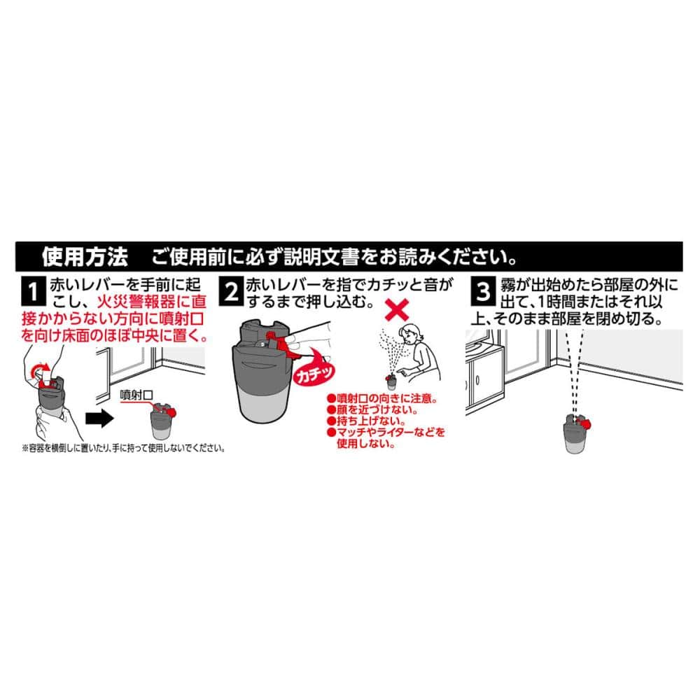 家中の不快な虫を徹底駆除!さらに従来のくん煙剤の手間を軽減!! ●従来のくん煙剤では事前準備が必要だった植物・精密機器へのカバーが不要に ※すべての植物・精密機器に影響がないことを保証するものではありません ●霧状なので、煙感知型、熱感知型のどちらの火災警報器にも反応しない ※ガス警報器には反応することがあります ●駆除効果が約1.5ヶ月続くので、家中のいや~な虫の対策としても最適 ※※使用環境により異なります ●素早く薬剤が行き渡るので、処理後の閉め切り時間は1時間でOK ●クイックレバーを手前に起こして、押し込むだけの簡単始動