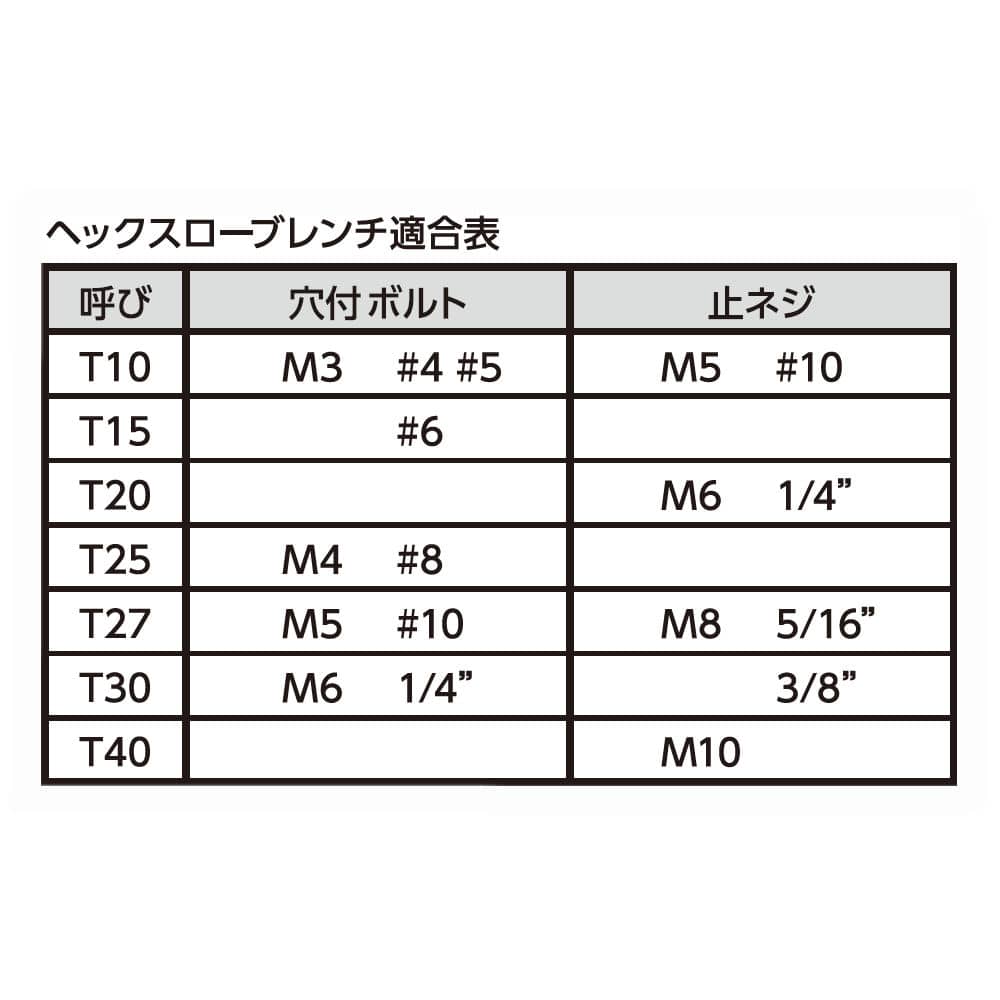 ●セット内容:ヘックスローブT10、T15、T20、T25、T27、T30、T40<br>●材質:クロムバナジウム鋼