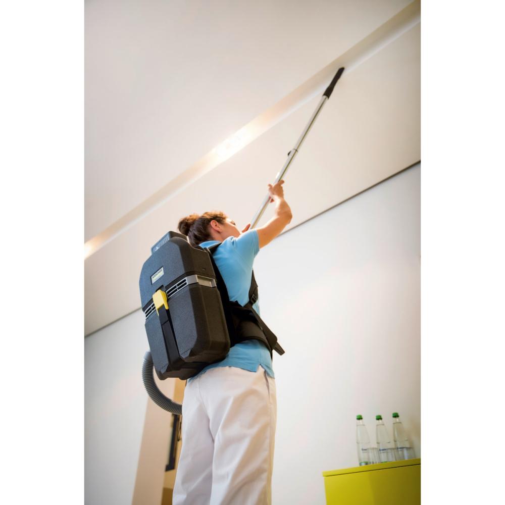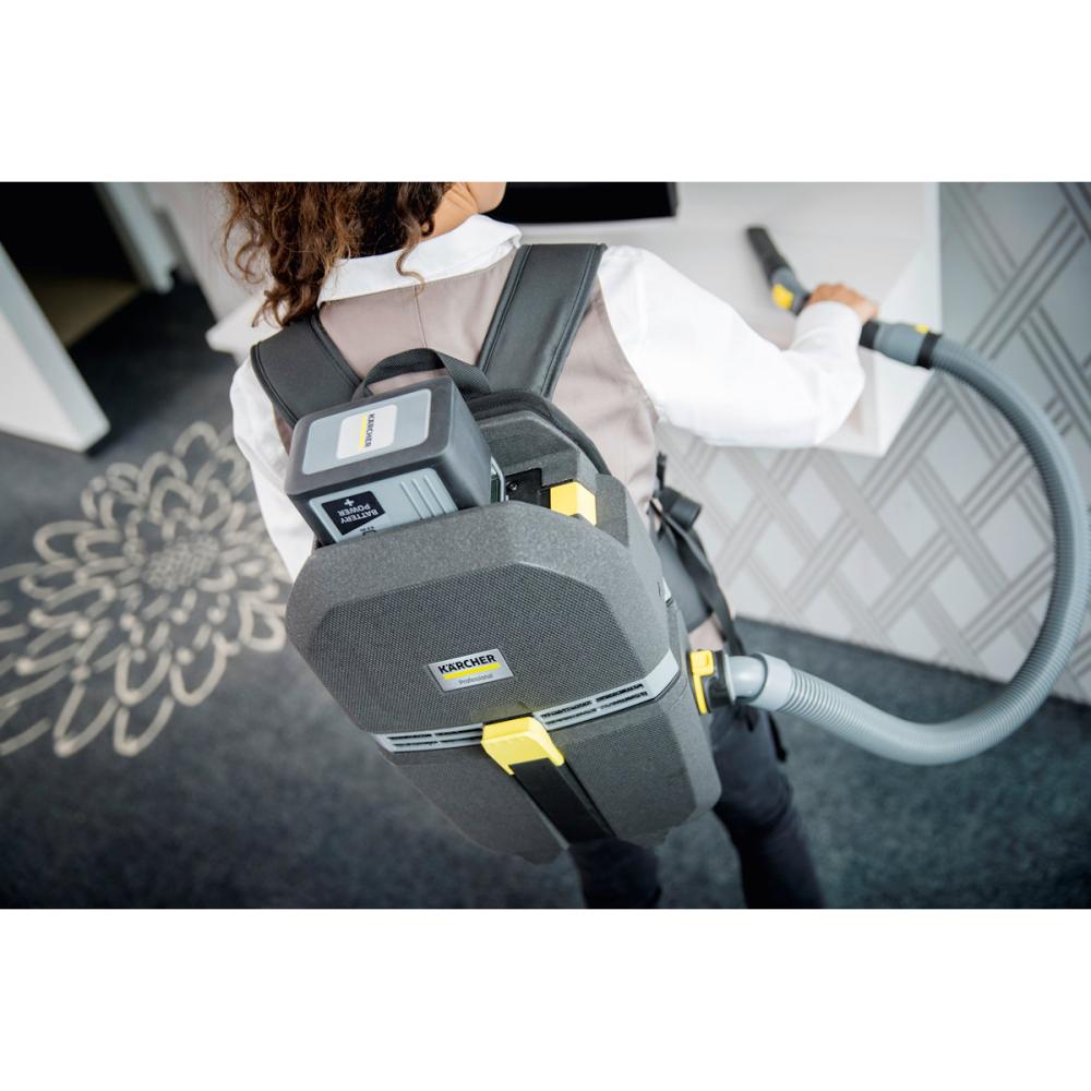 "●吸音性にも優れた素材ですので運転時のモーター音を抑えます。 ●背負部はドイツ有名リュックブランドDEUTER(ドイター社)と共同開発し、快適な背負い心地を実現しました。人間工学に基づく設計により背負い時の肩への負荷を減らし作業者の身体的負担を軽減します。 ●リモコンは腰元で操作し易く、サクションホース接続は右利き、左利き両方に対応します。 ●業界最高水準の吸引性能はコード式キャスター型掃除機と遜色ない清掃作業を実現します。 ●長時間バッテリー、5Lのタンク容量で余裕をもって作業頂けます。 ●キャニスタ"