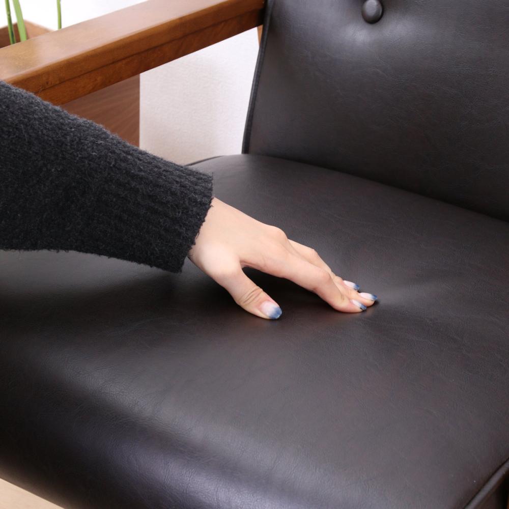 素材:構造部材/天然木(ラバーウッド) 表面加工/ラッカー塗装 張り材/合成皮革(PU) クッション材(座面)/ウェービングベルト・ウレタンフォーム クッション材(背もたれ)/ウレタンフォーム