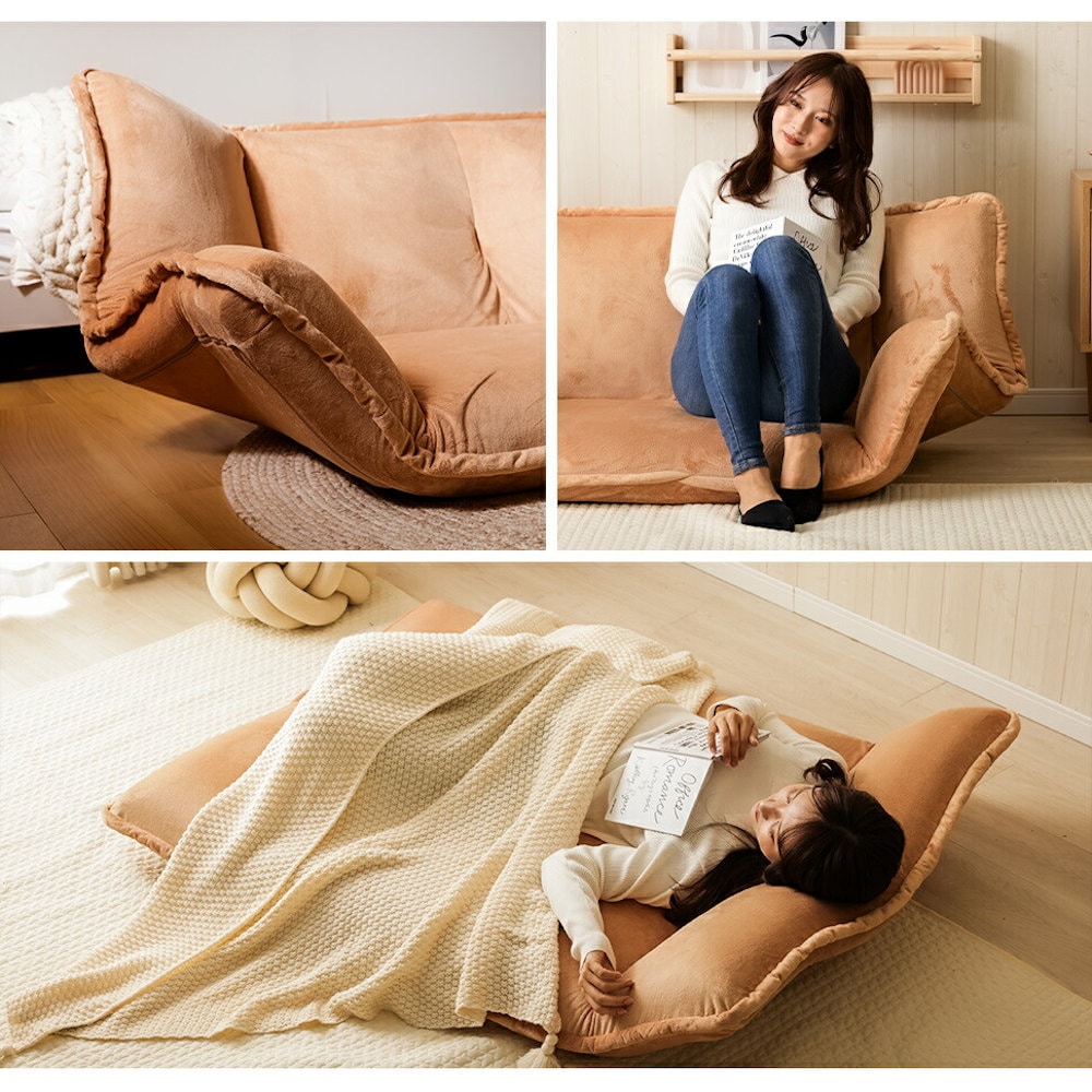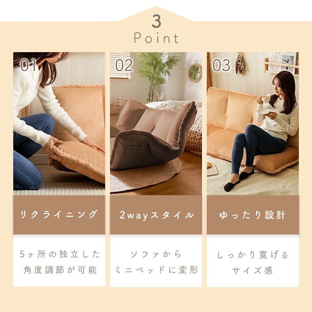 ■背もたれ・両肘・両肩部分が独立リクライニングする多機能ローソファ