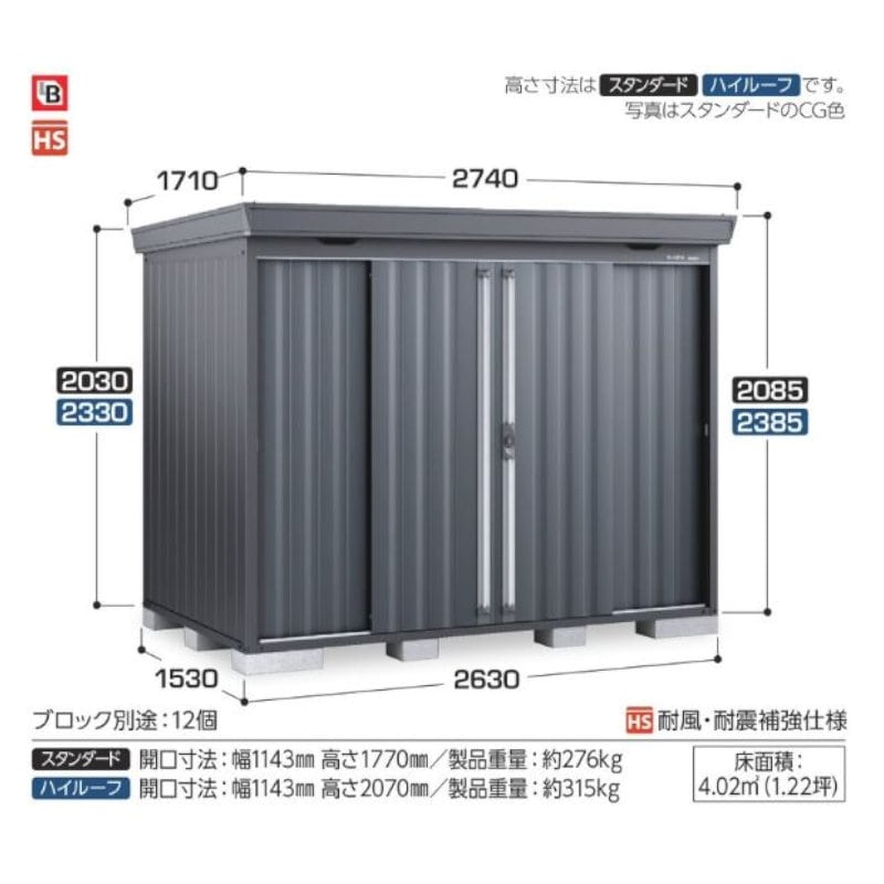 単品サイズ:間口2740mm×奥行1710mm×高さ2385mm