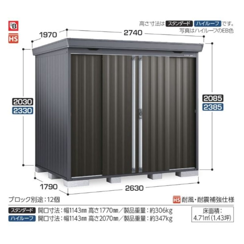 単品サイズ:間口2740mm×奥行1970mm×高さ2385mm