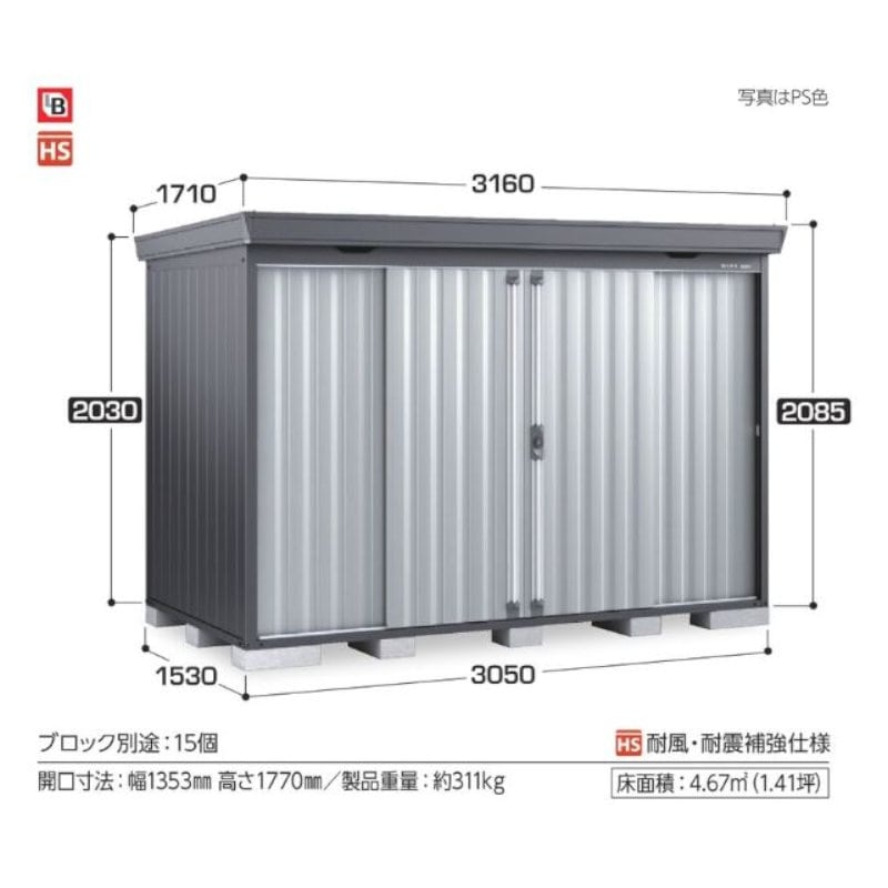 単品サイズ:間口3160mm×奥行1710mm×高さ2085mm