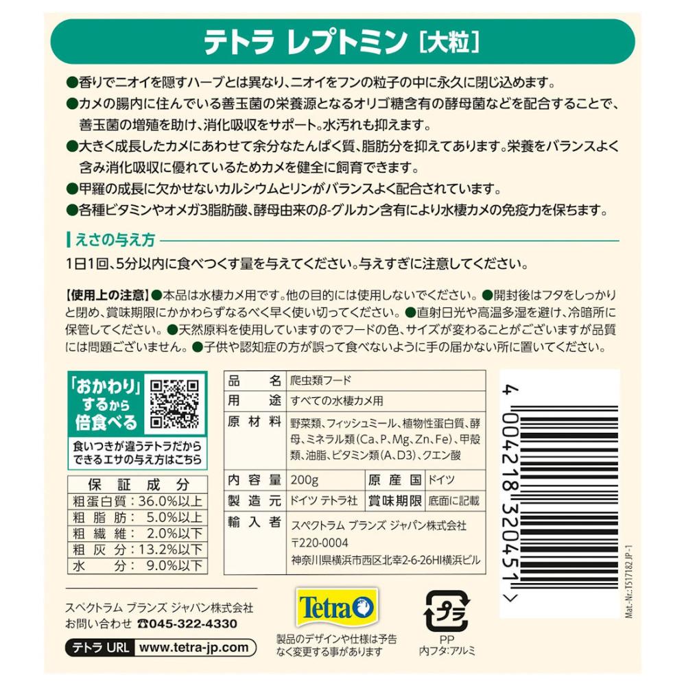 お取り扱い上の注意:●本品は水棲カメ用です。他の目的には使用しないでください。●開封後はフタをしっかりと閉め、賞味期限にかかわらずなるべく早く使い切ってください。●天然原料を使用してますのでフードの色、サイズが変わることがございますが品質には問題ございません。