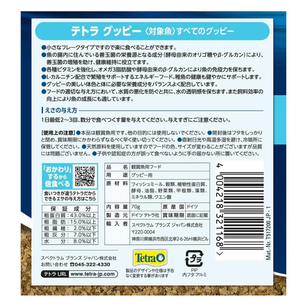 ●グッピーの美しい体色と体に必要な栄養成分を配合。