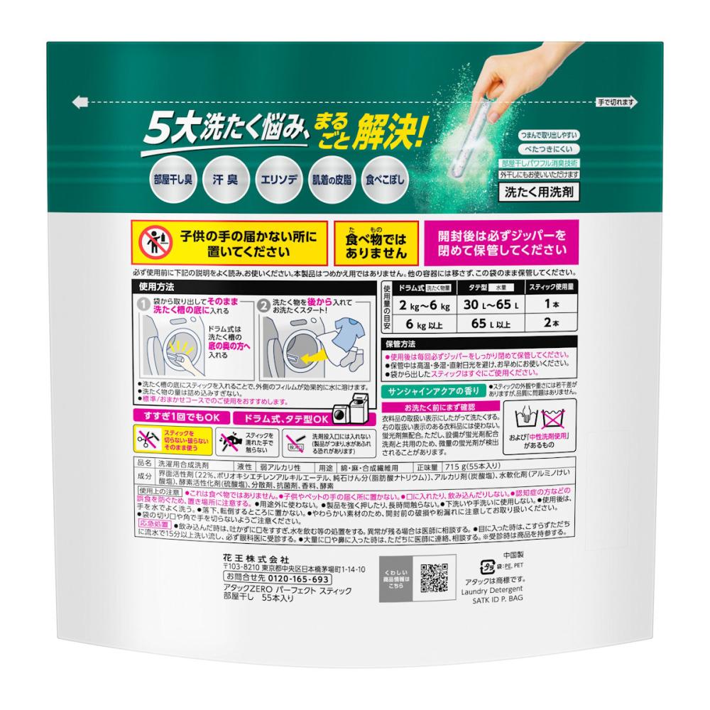 エリソデ・食べこぼし・肌着の皮脂・汗臭・部屋干し臭の「5大洗たく悩み」、まるごと解決! そのままポン!と計量いらず。 つまんで取り出しやすく、べたつきにくいスティックタイプ。 消臭・抗菌※・洗たく槽防カビ※も。 すすぎ6回でもOK。 ※すべての菌・カビの増殖を抑制するわけではありません