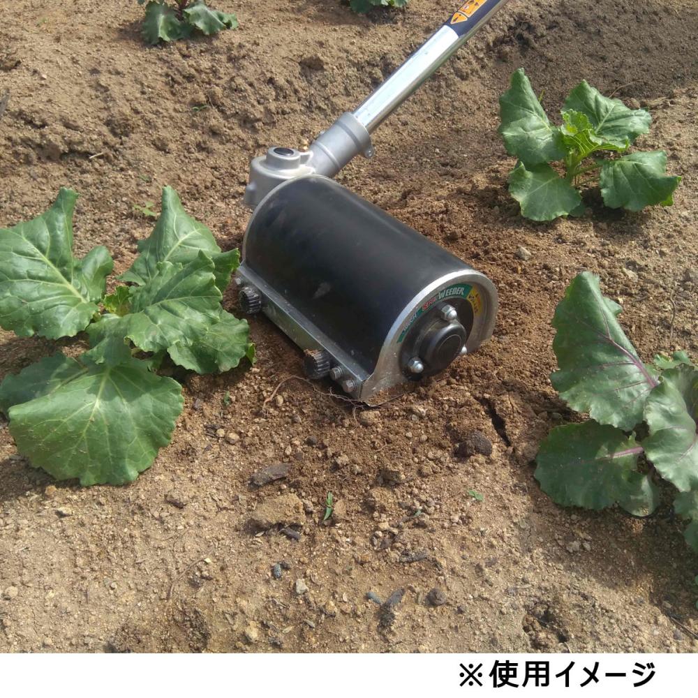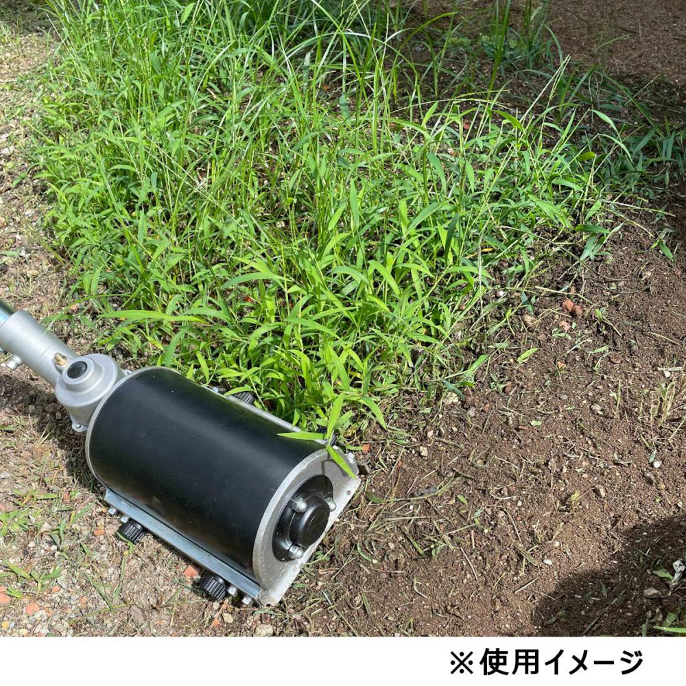 ●草刈作業用 ●高速回転フリーハンマー刃により、雑草を粉砕処理するため、集草の手間がいりません。 ●従来の機械やツールが使用しづらい場所で、効率的に草削りができます。刃が露出していないため、株間や樹木の周り、花壇、マルチシートの畝間などでも安心して使えます。 ●雑草を粉砕しつつ生長点から削り取るため、雑草抑制効果が高く、年間での除草回数を大幅に削減できます。 ●手持ちの刈払機に取付OK。
