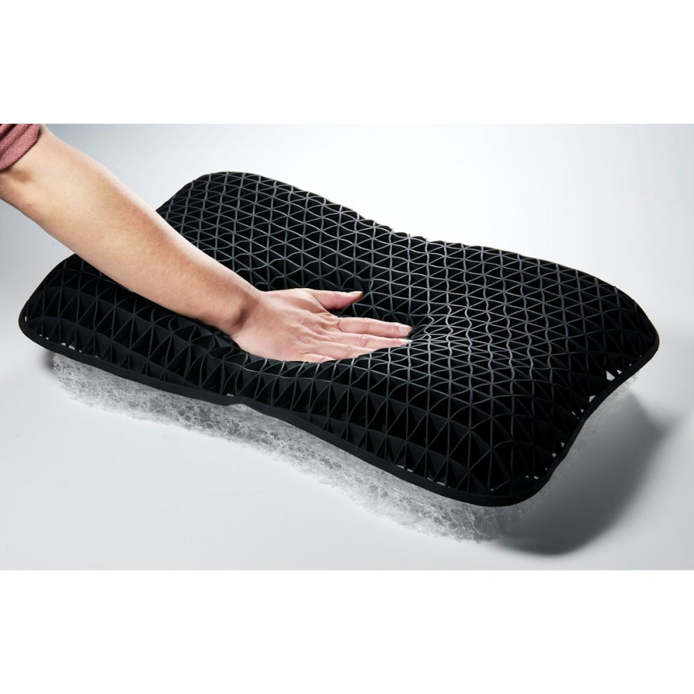 ■TPEの三角格子構造により、多くの点で頭・肩を支えることで睡眠時の安定感と流れるような寝心地を両立。また、圧力を広範囲に分散し、頭や首の負担を軽減。