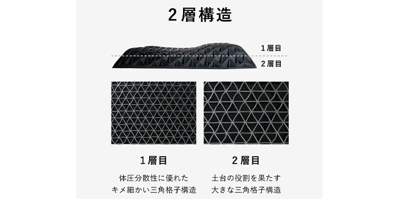 柔らかなTPE素材と三角格子構造の考え抜かれた構造で至高の睡眠へ!!