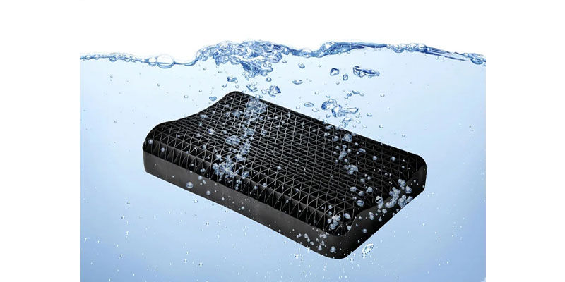 2種類の三角格子構造TPEを重ねることにより、頭をしっかり支えつつ、枕の表面から熱と湿気を効率よく分散。蒸れずに快適な寝心地を一晩中保ちます。