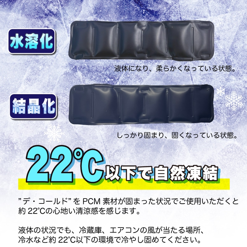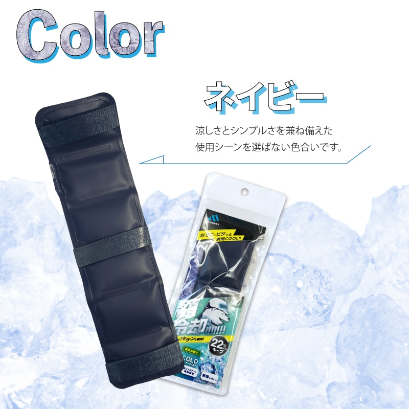 ●額冷却。 ●面ファスナーで簡単装着。 ●凍結までの目安時間:冷凍庫で約10分、冷蔵庫で約20分。