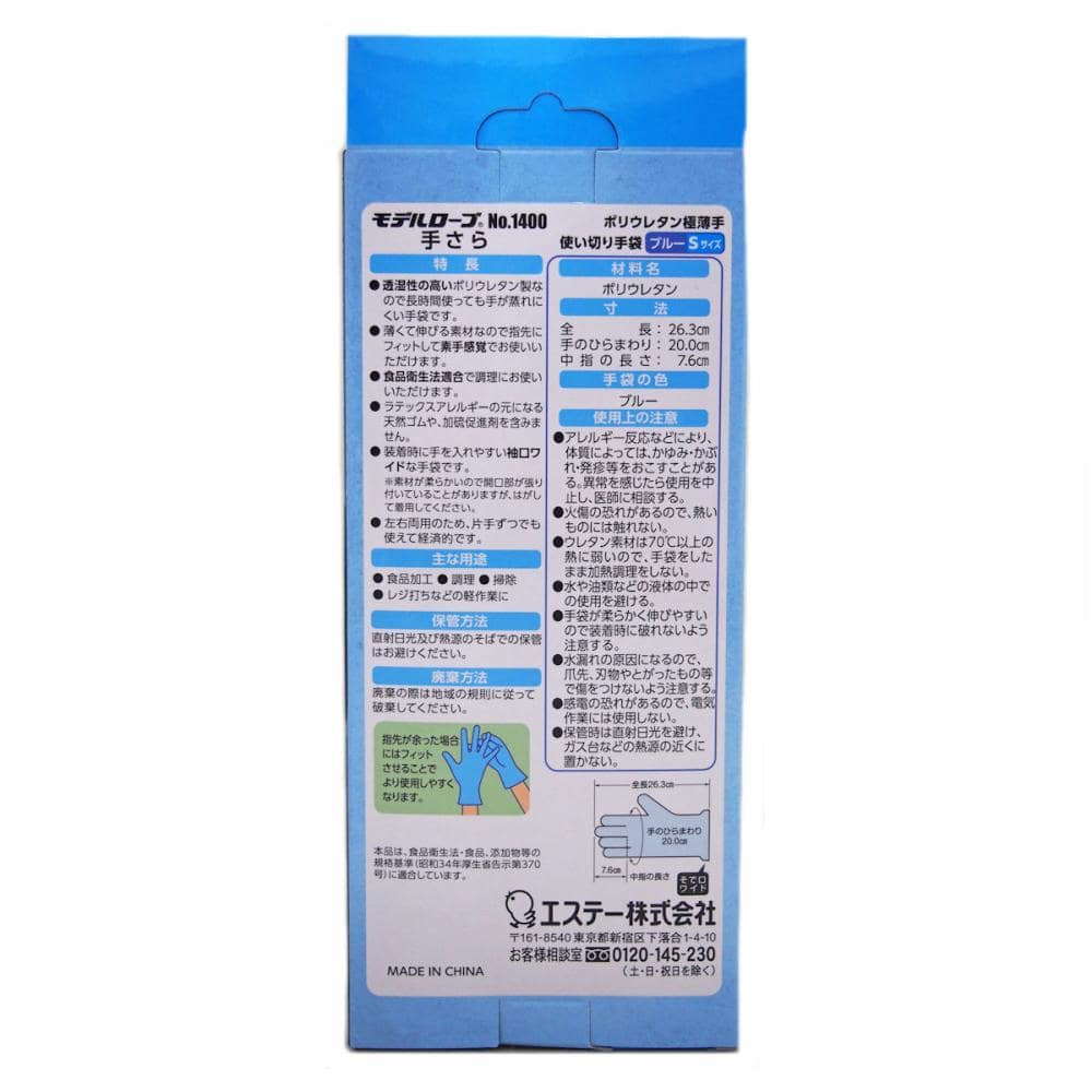 エステー モデルローブ No.1400手さら S 100枚入り