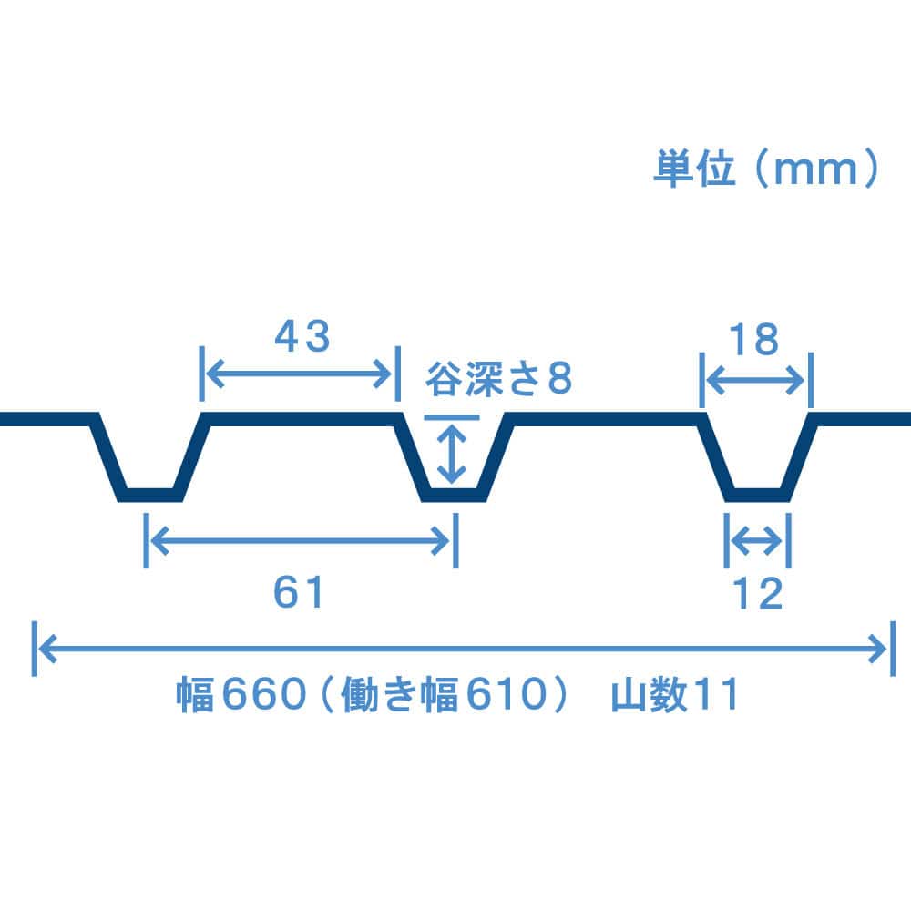 ◆幅660mm×長さ3048mm◆働き幅600mm◆厚さ0.17mm◆山間61mm