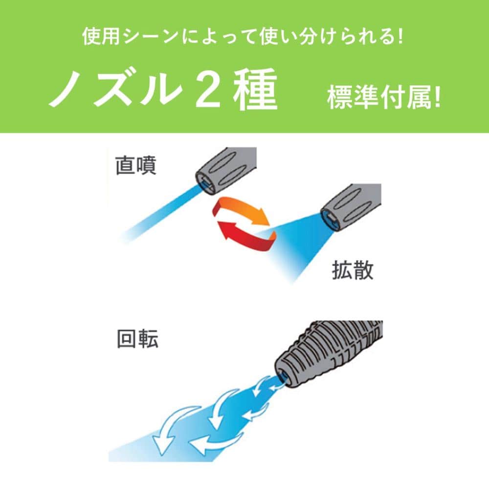 ●ノズルの入れ替えはワンタッチ式でバリオジェッノズル(直噴と拡散切り替え)とサイクロンノズル(水流を回転)を簡単に切り替えることが可能