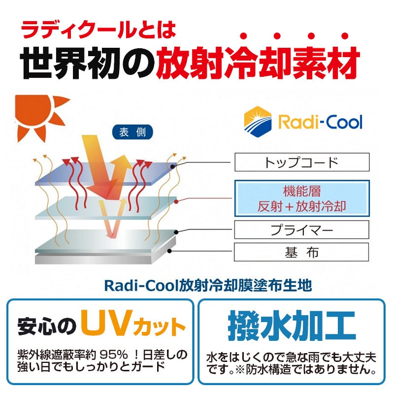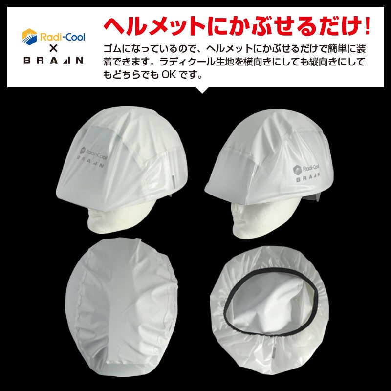 ●ラディクールは、直射日光下でも、水やエネルギーを消費することなく冷却できる新素材です。 【商品説明】 ●炎天下でも日陰のような涼しさを!世界初の放射冷却素材ラディクールを使用したヘルメットカバー。ラディクールは、直射日光下でも、水やエネルギーを消費することなく冷却できる新素材です。しかも、UVカット(紫外線遮蔽率約95%以上)。 ●ゴムになっているので、ヘルメットにかぶせるだけで簡単に装着できます。ラディクール生地を横向きにしても縦向きにしてもどちらでもOKです。 ●半透明なので、ヘルメットの社名、マーク、ラインシールなどは外から確認できます。 【商品仕様】 ●フリーサイズ:縦26~40.5cm(手で伸ばした時)×横26×40.5cm(手で伸ばした時) ※数字は目安です。※つばの長いヘルメットの場合は使用できない場合もございます。 重量:約24g 材質:ポリエステル100%