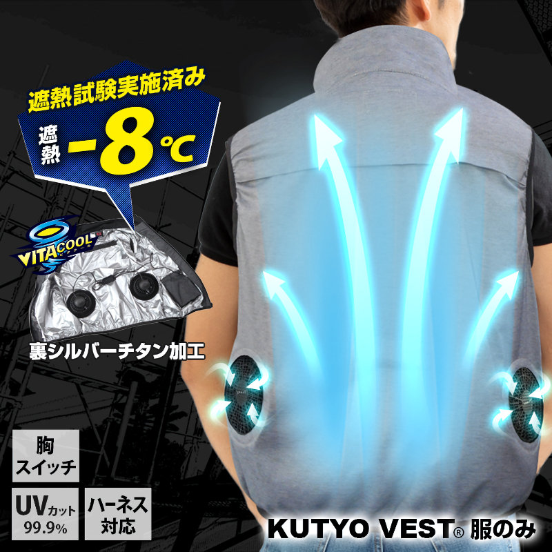 【商品説明】 ● フルハーネス着用にも対応。フルハーネスを着用した上から着られます。背中部分はチャック式になっており、安全帯ランヤードを通せるようになっています。使用しない時は、チャックが隠れる仕様。長袖を着用しない現場におすすめです。 ● ウェアに取付けたファンがウェア内へ送風。快適にレジャーが楽しめます。腕部分や裾は、ゴムで風を逃がしません。 ● スタンドカラーで後頭部へ風が抜けるように工夫されています。 ● 胸スイッチ付きケーブルは服に装着されています。※胸スイッチ付きケーブルのみの販売は行っておりません。 ● ファンの取り付けが簡単になりました。メッシュポケットにファンを入れるだけ。 【セット内容】 服のみ(12V胸スイッチ付ケーブル付属) ※ファン、バッテリー、充電器は別売り。 対応ファンユニットは「BR-382」 (ウェア洗濯表示) 液温は40 ℃を限度とし、洗濯機で弱い処理が出来る 塩素系及び酸素系漂白剤の使用禁止 タンブル乾燥禁止 日陰のつり干しがよい 底面温度150℃を限度としてアイロン仕上げができる ドライクリーニング禁止 非常に弱い操作によるウエットクリーニングができる