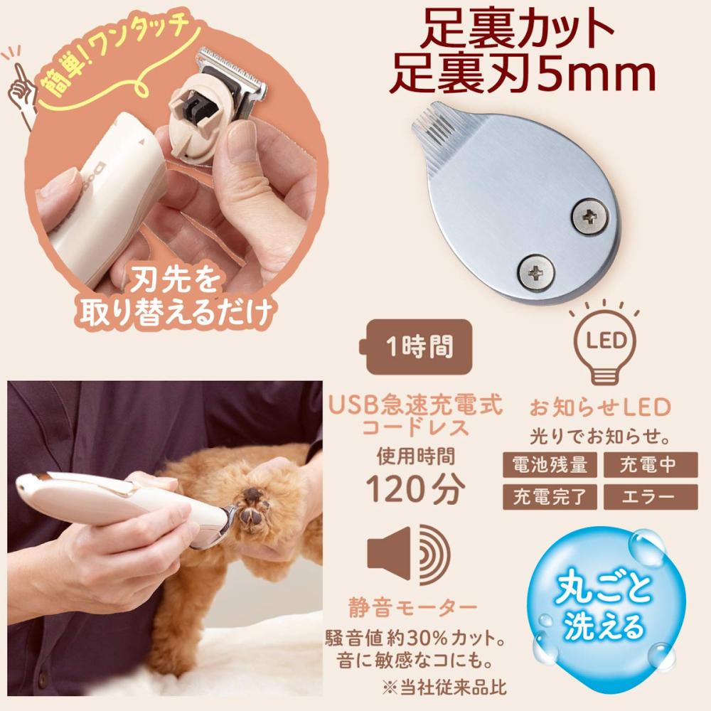 ●砂や小石の巻き込みに強く、欠けにくい上下金属刃採用。刃先は平らで皮膚を傷つけにくく、ペットにも人にもやさしい。
