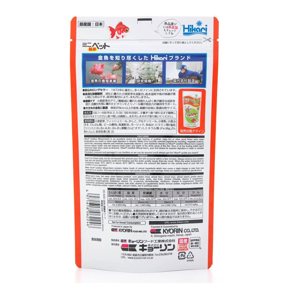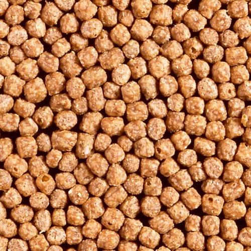 原材料・成分:小麦胚芽、フィッシュミール、かしこ、グルテンミール、小麦粉、小麦ふすま、でんぷん類、ビール酵母、海藻粉末、ガーリック、米ぬか、ビタミン類(塩化コリン、E、C、B5、B2、A、B1、B6、B3、葉酸、D3、ビオチン)、ミネラル類(Fe、Mg、Zn、Mn、Cu、I)、食用色素(赤3)