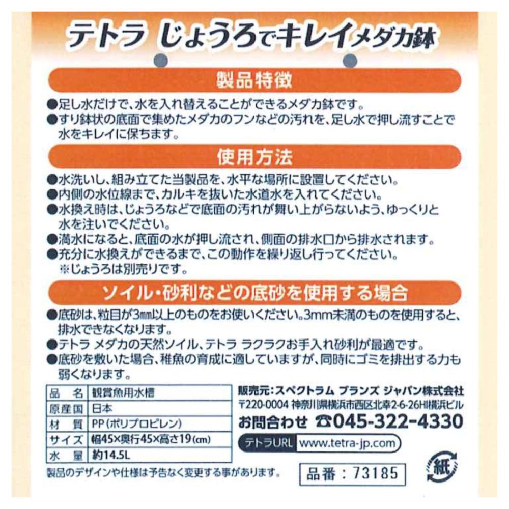 お取り扱い上の注意:●水換え時はじょうろなどで底面の汚れが舞い上がらないよう、ゆっくりと水を注いでください。●砂利は粒目が3mm以上のものをお使いください。●3mm以下のものを使用すると排水できなくなります。