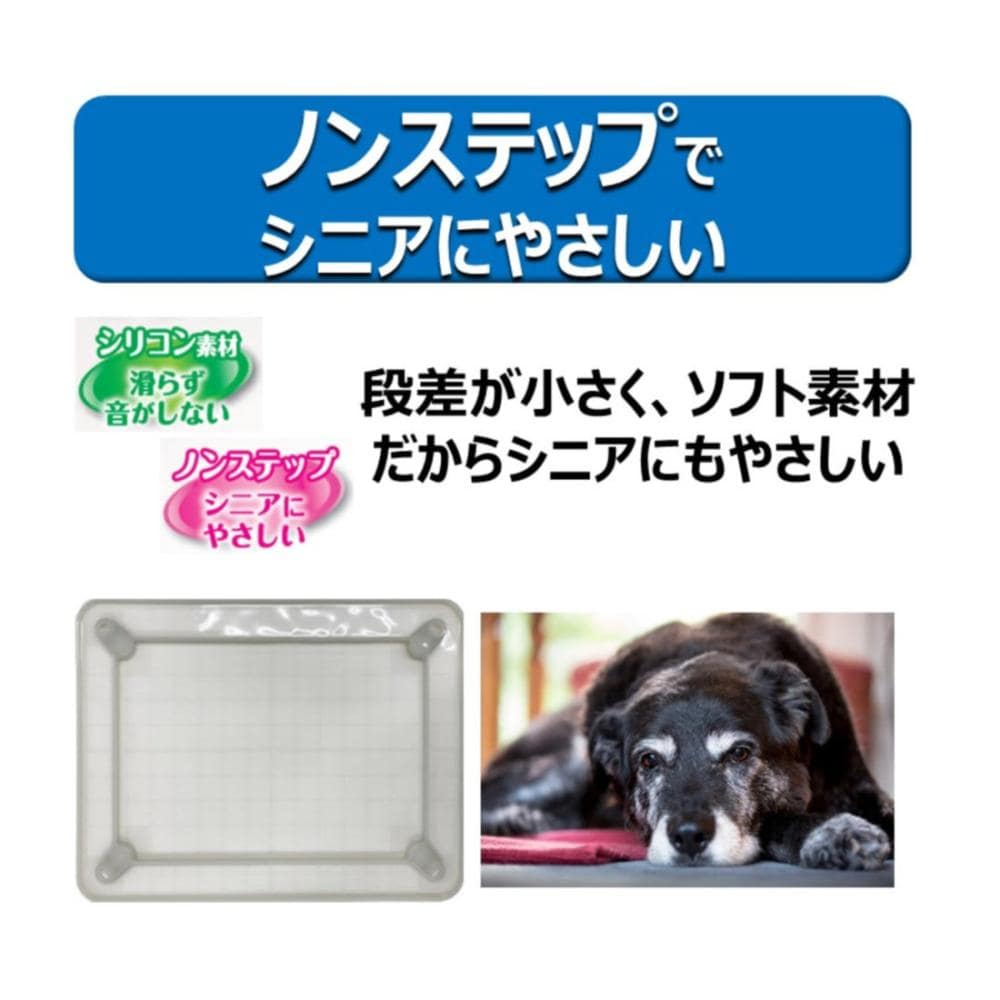 お取り扱い上の注意:●本品は愛犬用のトイレマットです。用途以外に使用しない。●愛犬の性格や体調などをよく理解し使用する。●尿の量や排泄の状況により漏れることがある。尿が漏れたまま放置すると、床を傷める恐れがあるので注意する。●シリコン特有のニオイが気になる場合は、洗ってから使用する。●火気のそばで使用しない。●噛むと破損するので、噛み癖のある愛犬には使用しない。万一、愛犬が破損した破片を誤飲した場合は獣医師に相談する。●マット面やストッパー部分はシリコン製のため、強く引っ張ったり、刃物、尖ったものに当たると破損の恐れがある。破損した場合は直ちに使用を中止し、新しい製品に買い替えてください。●廃棄の際は、各自治体の指示に従う。●誤った使用や不当な分解、修理、改造等はしない。●製品により多少色が異なる場合がある。