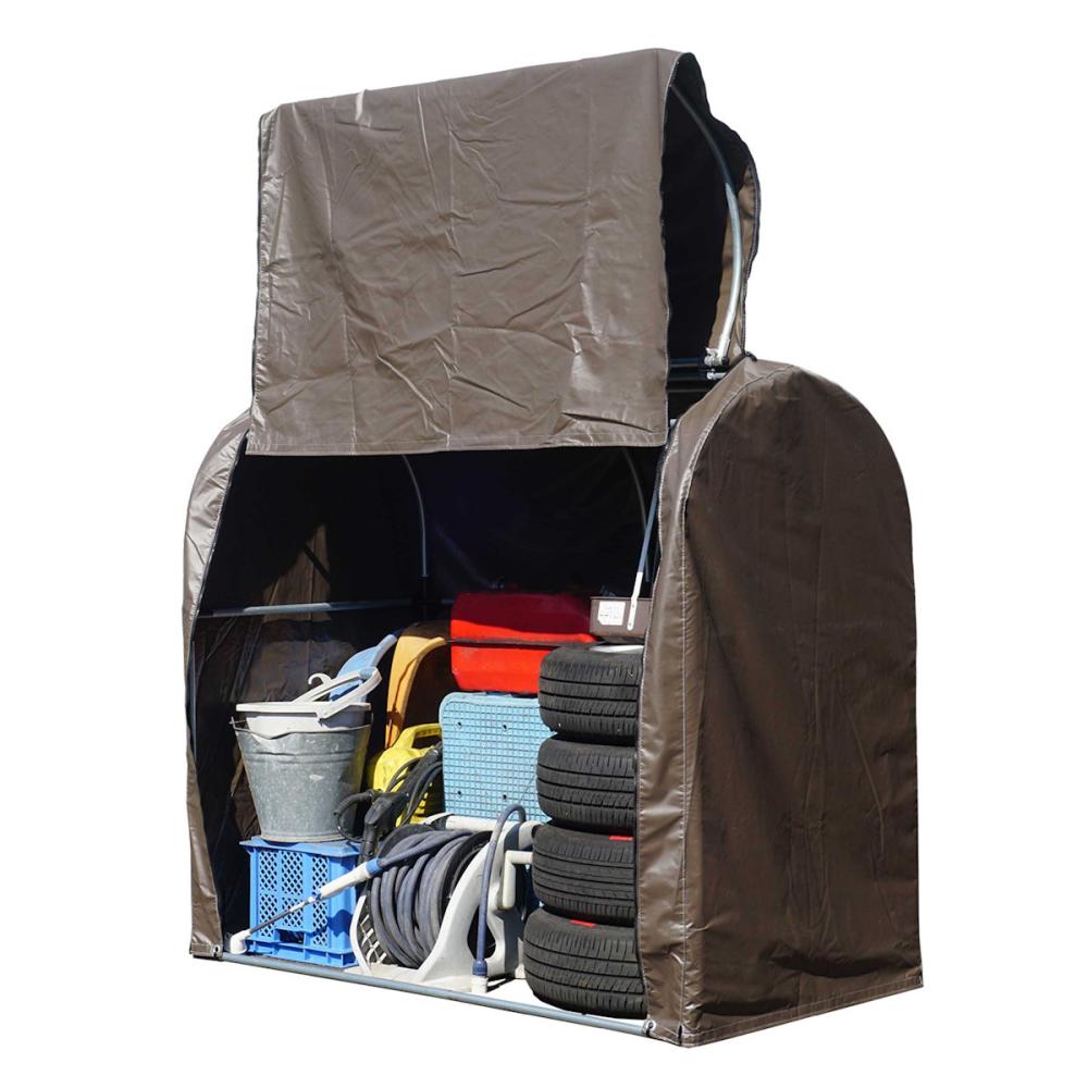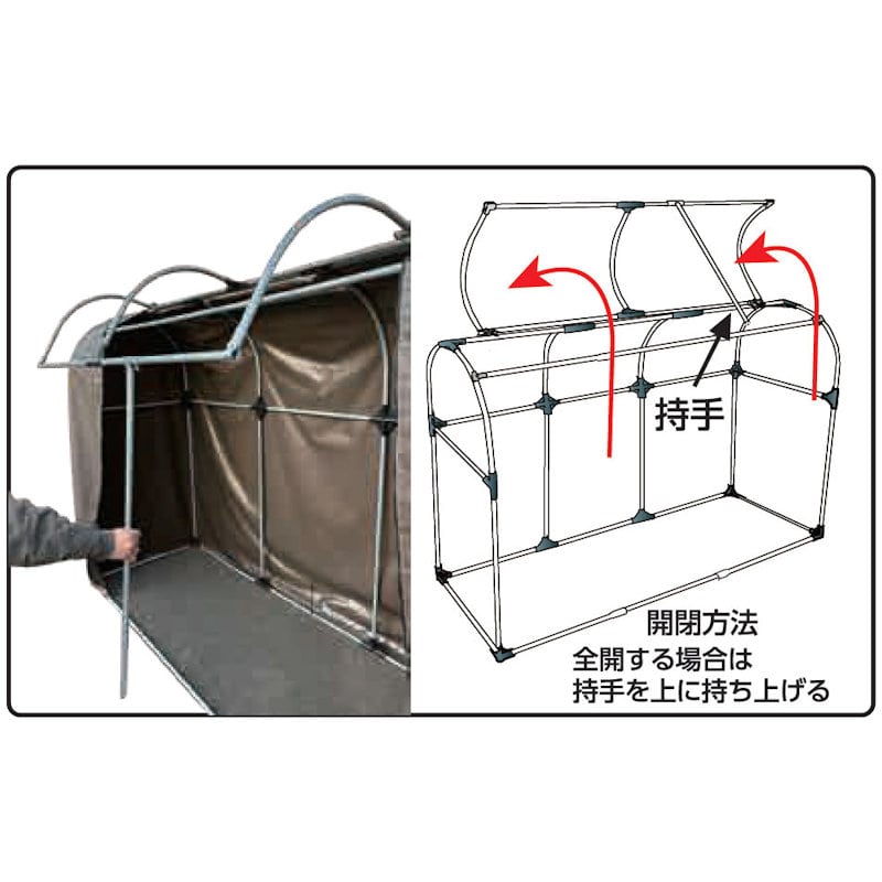 ・亜鉛メッキスチールパイプ・樹脂部品 塩化ビニールコーティングシート(高耐久タイプ)・軒下簡易物置 ・お客様組み立て品