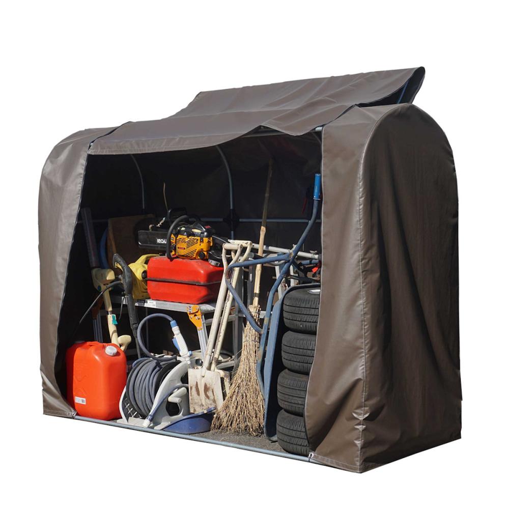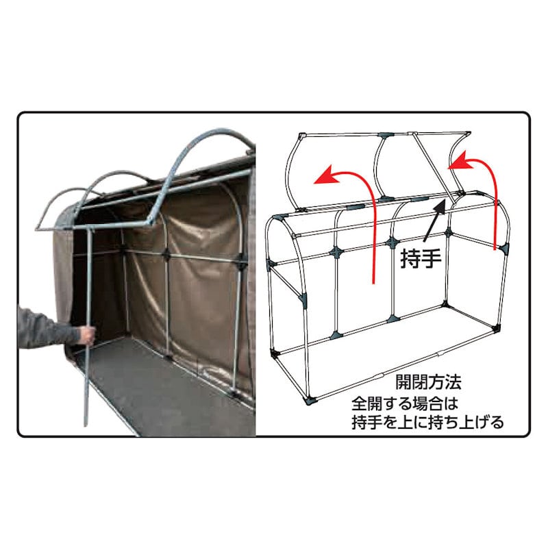 ・亜鉛メッキスチールパイプ・樹脂部品 塩化ビニールコーティングシート(高耐久タイプ)・軒下簡易物置 ・お客様組み立て品