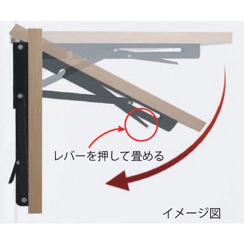 ワンタッチ式折りたたみ棚受け。レバー操作で簡単に折りたたみできます。