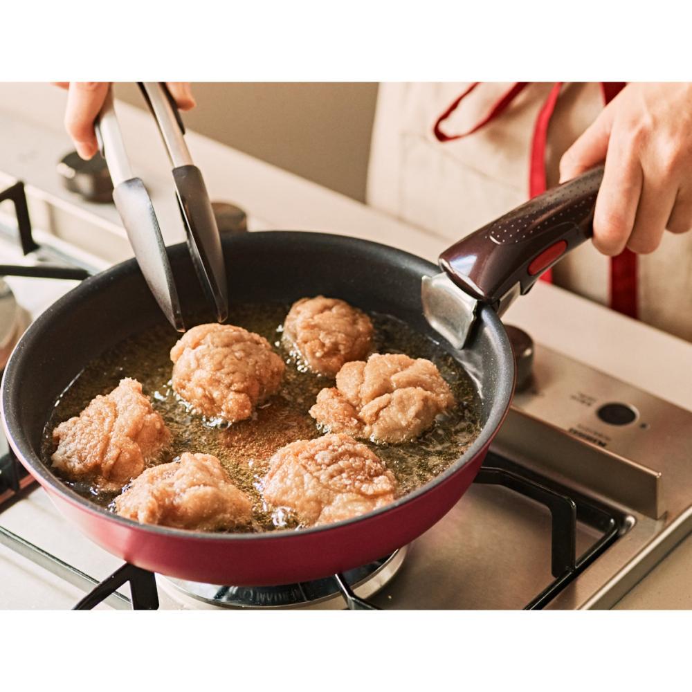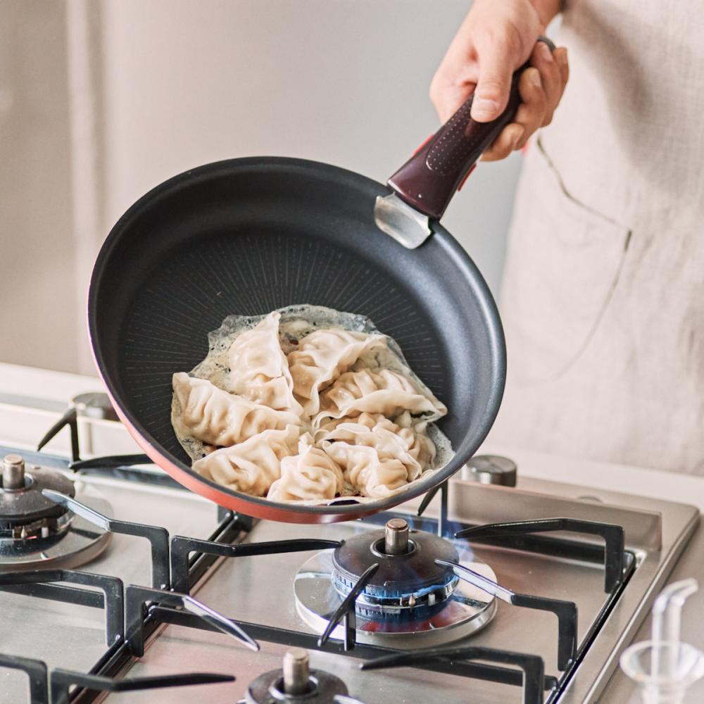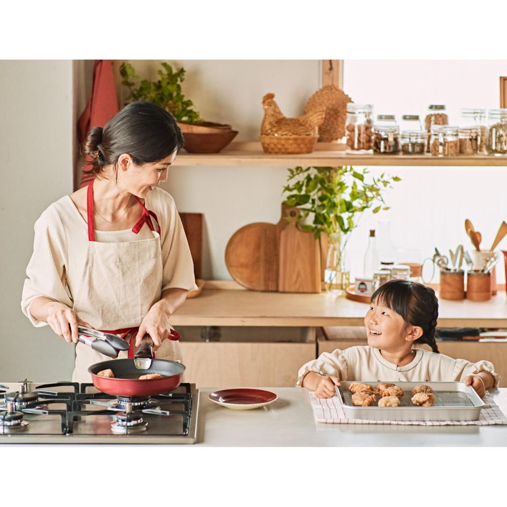 ■取っ手を外して重ね、限られたキッチンスペースにもスッキリ収まります。フライパン1個分のスペース