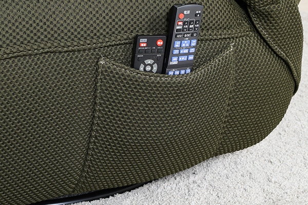 雑誌やリモコンを収納できる便利なポケット付き。