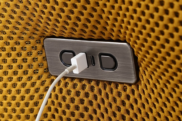 ■サイドにUSBポートがついているので、スマホやPCを手元で充電できます。