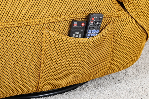 雑誌やリモコンを収納できる便利なポケット付き。