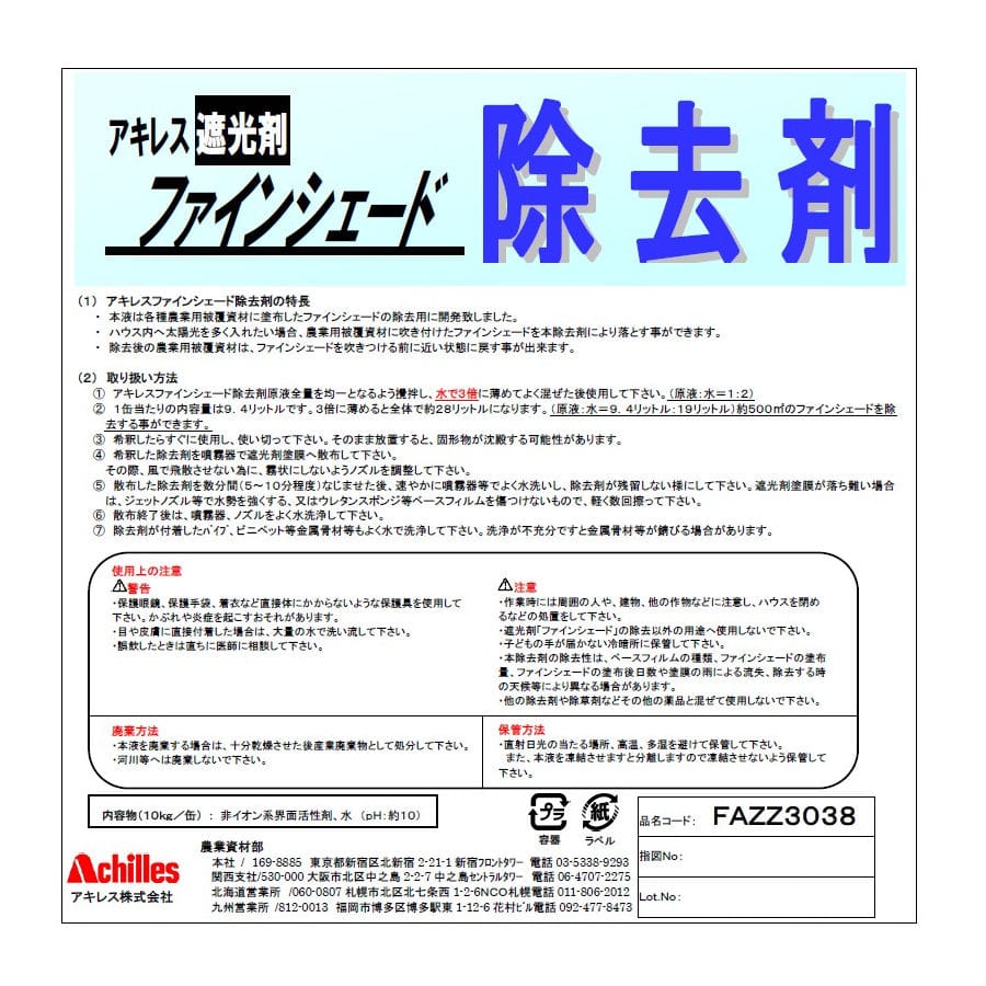 ●本液は各種農業用被覆資材に塗布したファインシェードの除去剤です。