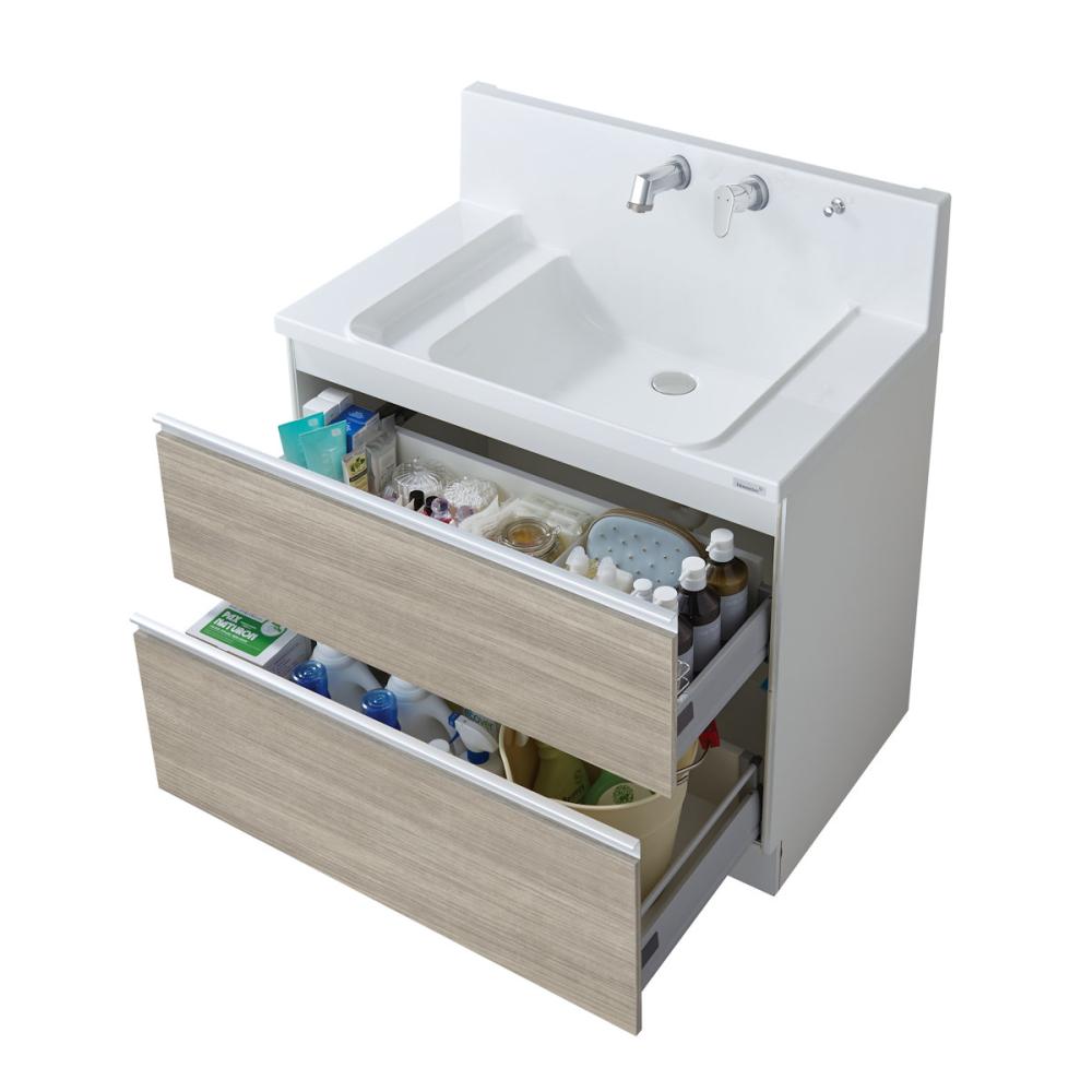 汚れがたまらずお掃除ラクラク!広いボウルでゆったり使える!広いスペースでしっかり収納!シンプルで使いやすく、無理のない毎日をかなえる洗面化粧台です。 |