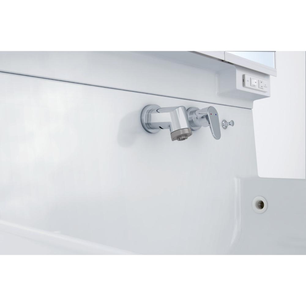 汚れがたまりにくい 「壁付水栓」。お掃除がしやすく、デザイン性が高い ワンランク上の洗面化粧台です。 |