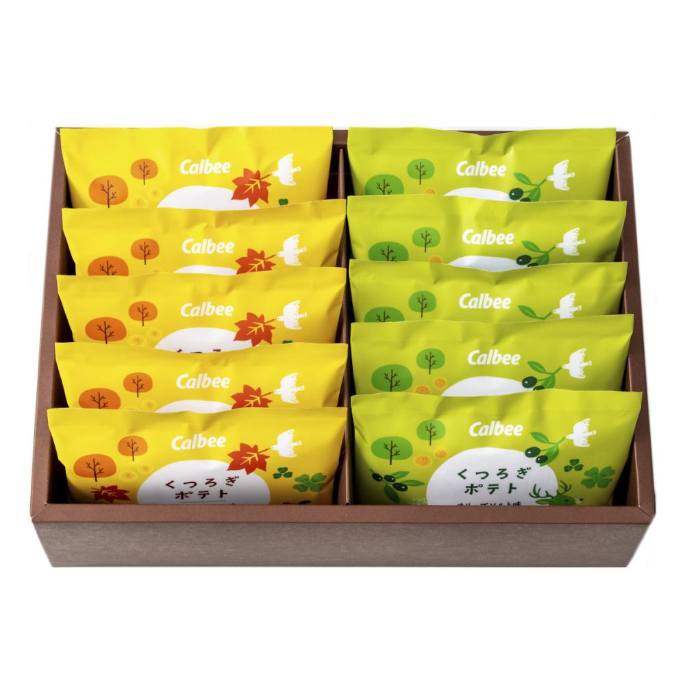 贈られた人がほっとする、幸せな気分になるカジュアルギフト 内容量:くつろぎポテト(オリーブソルト味16g×5袋、メープルバター味16g×5袋) 8大アレルゲン:乳