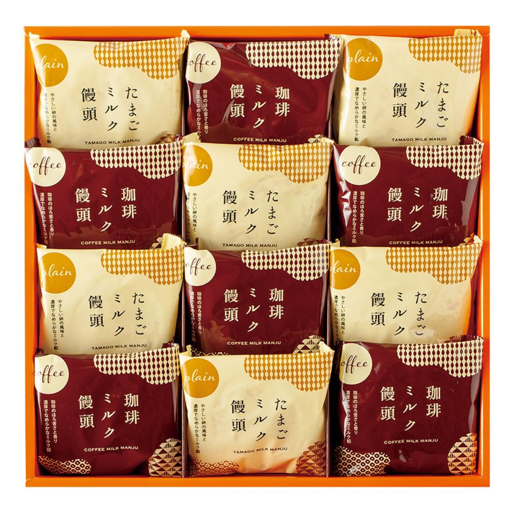 濃厚でなめらかなミルク餡を包んでじっくり焼き上げた、たまごミルク饅頭と珈琲ミルク饅頭の詰め合わせ。
