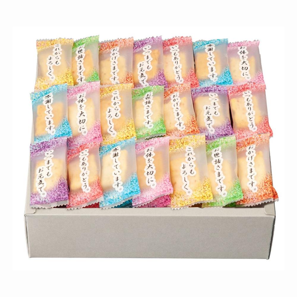普段言葉では言い表せない「感謝のきもち」を、個包装にデザインしました。中身はソフトに焼き上げた上品な味わいは幅広い年代の方に召し上がっていただけます。