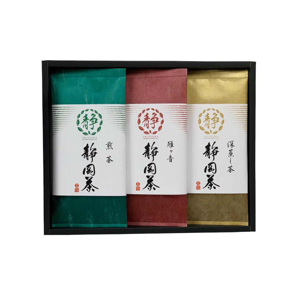 内容量:煎茶(静岡茶)・雁ヶ音(静岡茶)・深蒸し茶(静岡茶)各50g×各1
