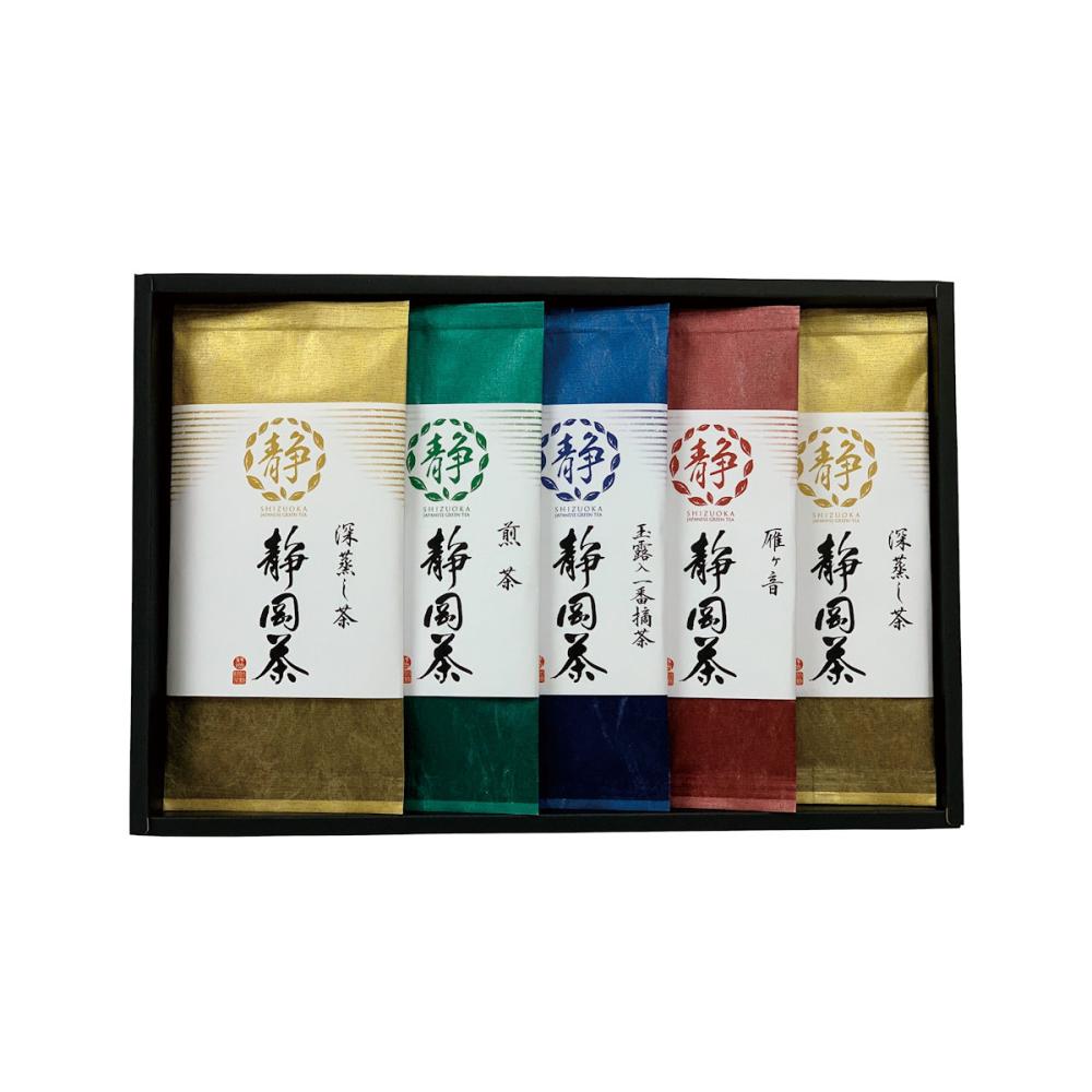 内容量:玉露入一番摘茶(静岡茶)50g×1、深蒸し茶(静岡茶)60g×2、雁ヶ音(静岡茶)・煎茶(静岡茶)各60g×各1
