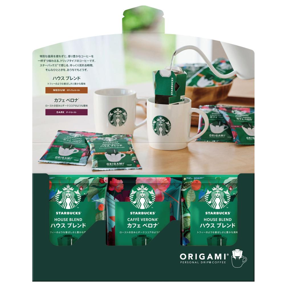 内容量:スターバックス オリガミ パーソナルドリップ コーヒー ハウス ブレンド×3袋、スターバックス オリガミ パーソナルドリップ コーヒー カフェ ベロナ×2袋
