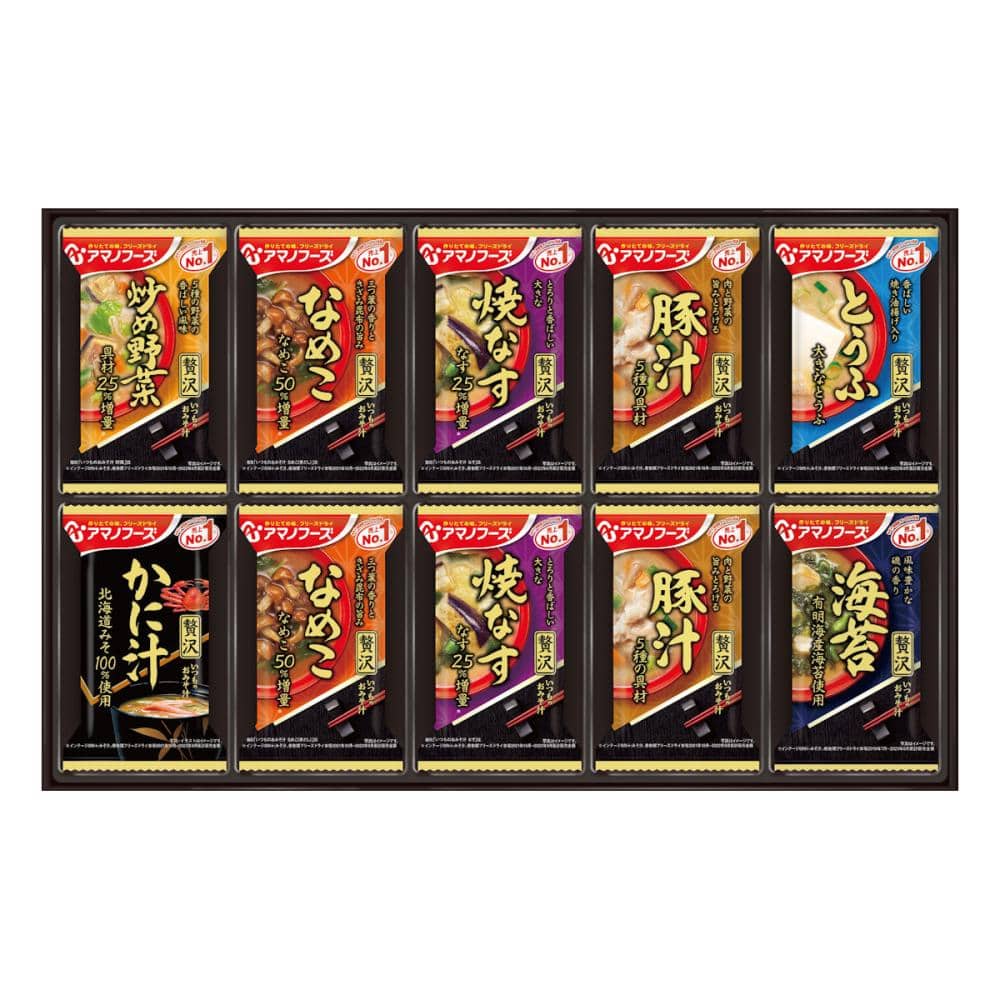フリーズドライおみそ汁のギフト。お湯を注ぐだけで簡単に本格的な味をお楽しみいただけます。