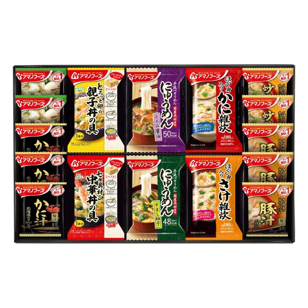 内容量:いつものおみそ汁(贅沢かに汁・贅沢豚汁)×各3食、いつものおみそ汁(贅沢炒め野菜・長ねぎ)×各2食、とろっと卵の親子煮・五目中華あんかけ・にゅうめんとろみ醤油・にゅうめんすまし柚子・ほぐし身入りかに雑炊・ほぐし身入りさけ雑炊×各2食 計22食 8大アレルゲン:卵,乳,小麦,えび,かに