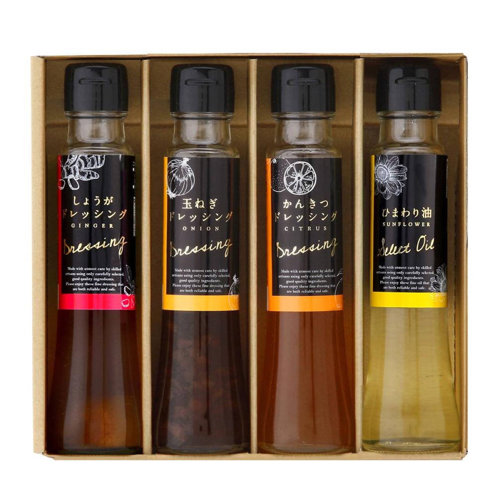 内容量:しょうがドレッシング100mL、玉ねぎドレッシング100mL、かんきつドレッシング100mL、ひまわり油90g×各1 8大アレルゲン:小麦