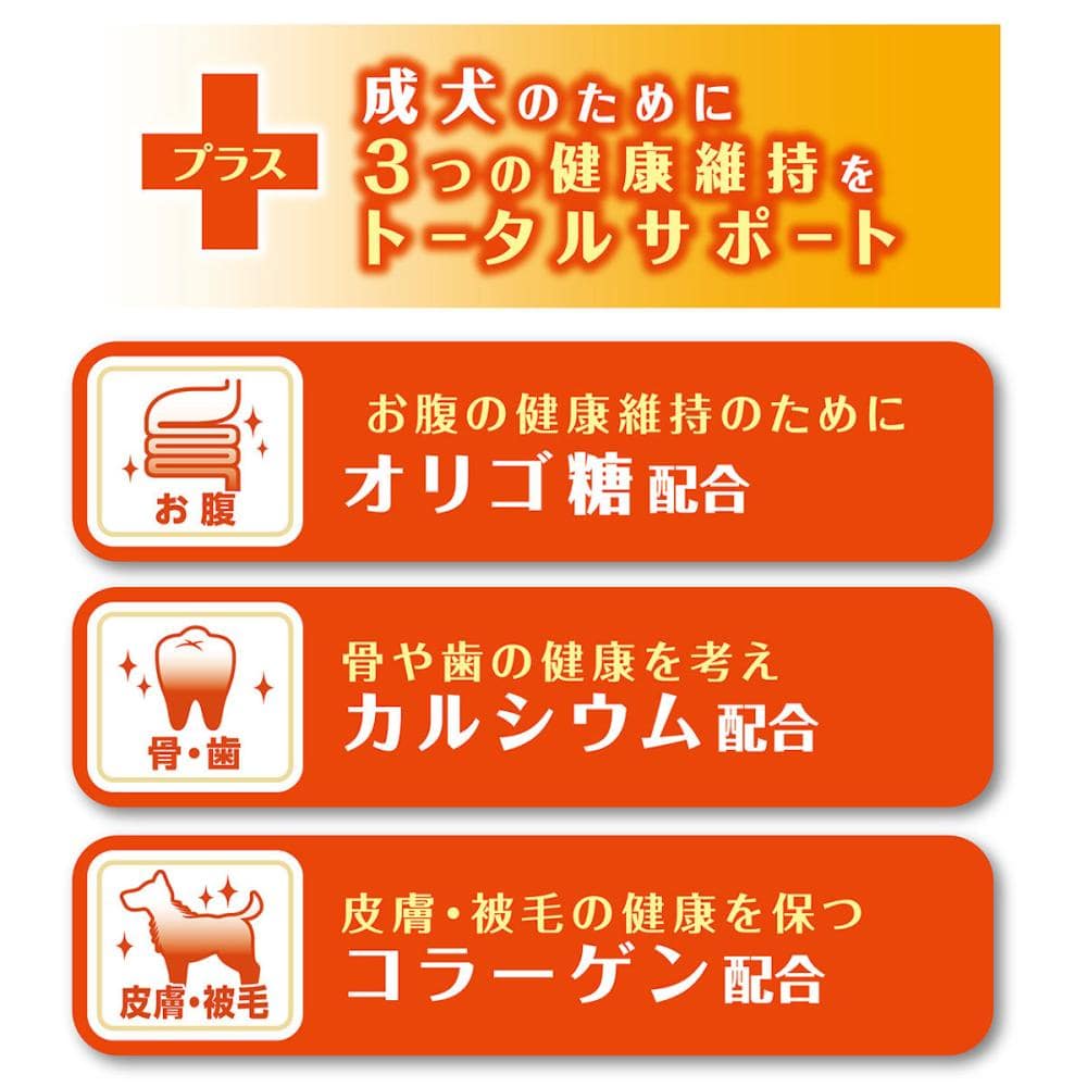 お取り扱い上の注意:●本商品は、成犬用総合栄養食です。●ペットフードとしての用途をお守りください。●犬の食べ方や習性によっては、のどに詰まらせることがありますので必ず観察しながらお与えください。●別記の与え方の給与量、および保存方法をお守りください。●子供がペットに与える場合は、大人が立ち会ってください。●幼児・子供・ペットのふれない所に保管してください。