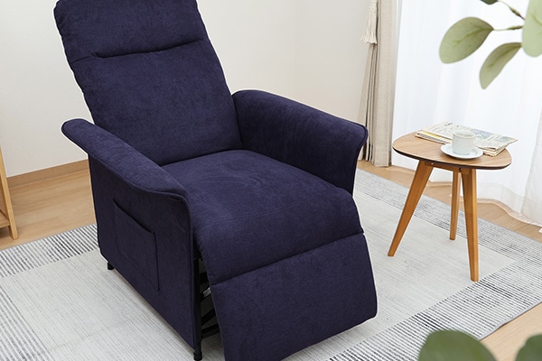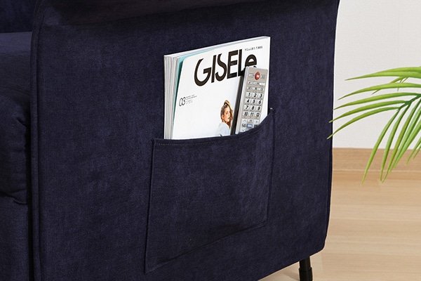 チェアのサイドには大きなポケットがついており、リモコンや雑誌などを収納できます。