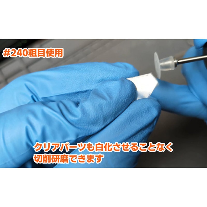 ●プラスチック、レジン、軽金属、木材など幅広く活躍 ●粗目(#240)のディスクが5枚入っています ●回転による研磨で効率的に ●曲面の研磨や部品のカットもできます。 ●プラスチック、レジン、軽金属、木材等のカット、研磨に使用できます。 ●10000回転以上で研磨するため、軽くなでるだけでスムーズに研磨できます。 ●クリアパーツの白化も抑えながら切削ができます ●定期的にスポンジなどで削り粉を払ってください