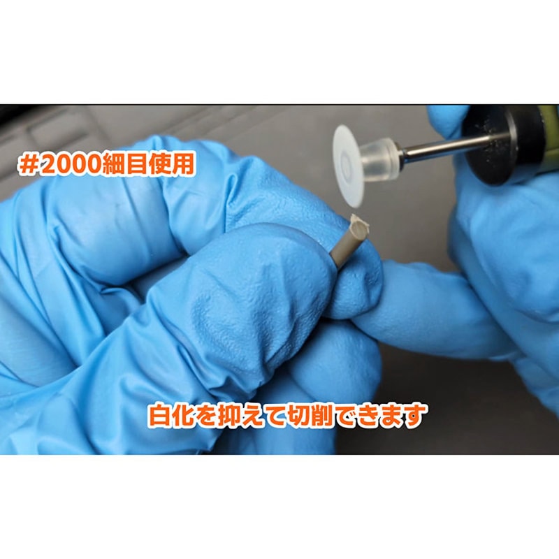 ●プラスチック、レジン、軽金属、木材など幅広く活躍 ●中目(#600)のディスクが5枚入っています ●回転による研磨で効率的に ●曲面の研磨や部品のカットもできます。 ●プラスチック、レジン、軽金属、木材等のカット、研磨に使用できます。 ●10000回転以上で研磨するため、軽くなでるだけでスムーズに研磨できます。 ●クリアパーツの白化も抑えながら切削ができます ●定期的にスポンジなどで削り粉を払ってください